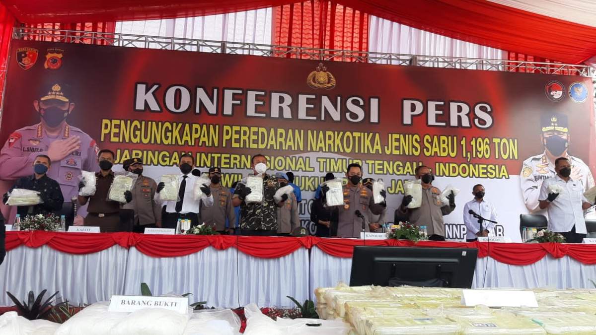 “Dari pengungkapan tersebut didapatkan barang bukti 66 karung berisi 1,196 ton sabu-sabu, kemudian satu paket sabu-sabu 27 gram, dan paket sabu-sabu 6 gram,” kata Listyo, di Pusat Pendidikan Intelijen Polri, Kabupaten Bandung, Kamis, 22 Maret 2022.