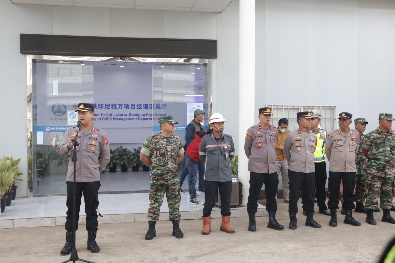 Pemberian pengarahan tersebut dilakukan di area Stasiun KCIC Tegalluar, Desa Cibiru Hilir, Kecamatan Cileunyi, Kabupaten Bandung, Jawa Barat.