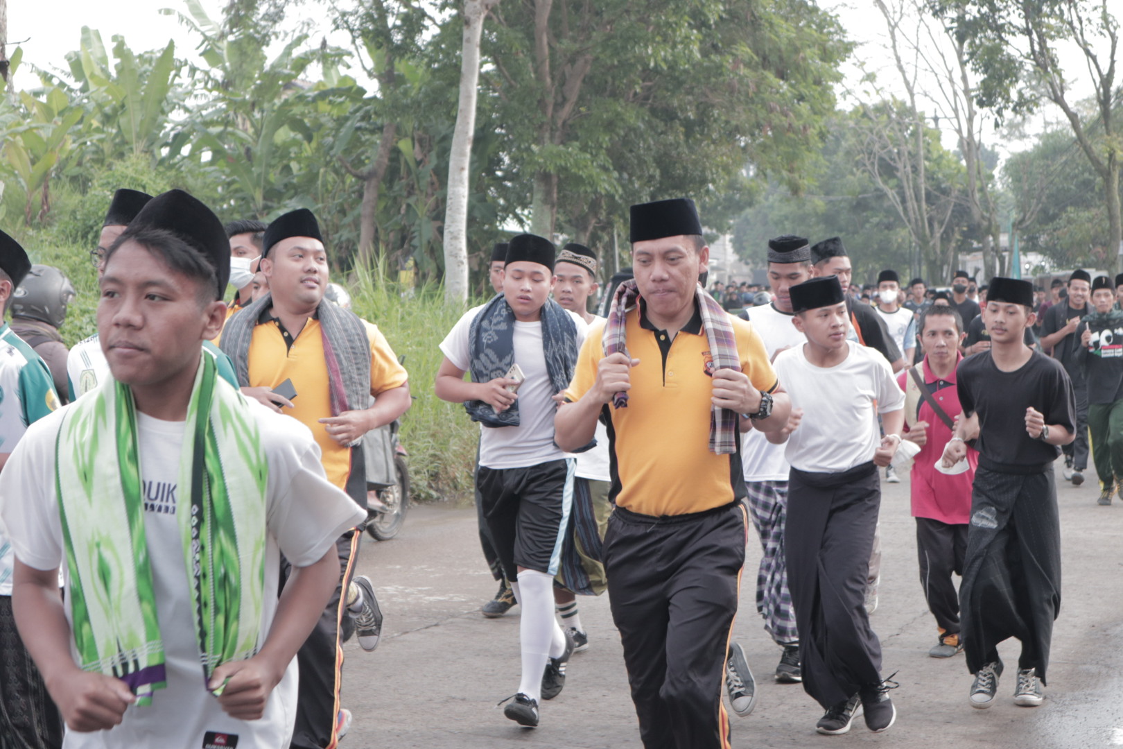 Gunakan Sarung, Peci dan Hijab. Ribuan Santri Ramaikan Olahraga Lari Bahagia di Polresta Bandung