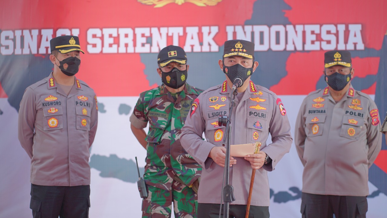 Top Jabar, Soreang – Kapolri Jenderal Listyo Sigit Prabowo di dampingi Kapolda Jabar Irjen Pol Suntana dan Kapolresta Bandung Kombes Pol Kusworo Wibowo meninjau langsung pelaksanaan vaksinasi di Pusdikintel, Kutawaringin, Kabupaten Bandung, Jawa Barat.