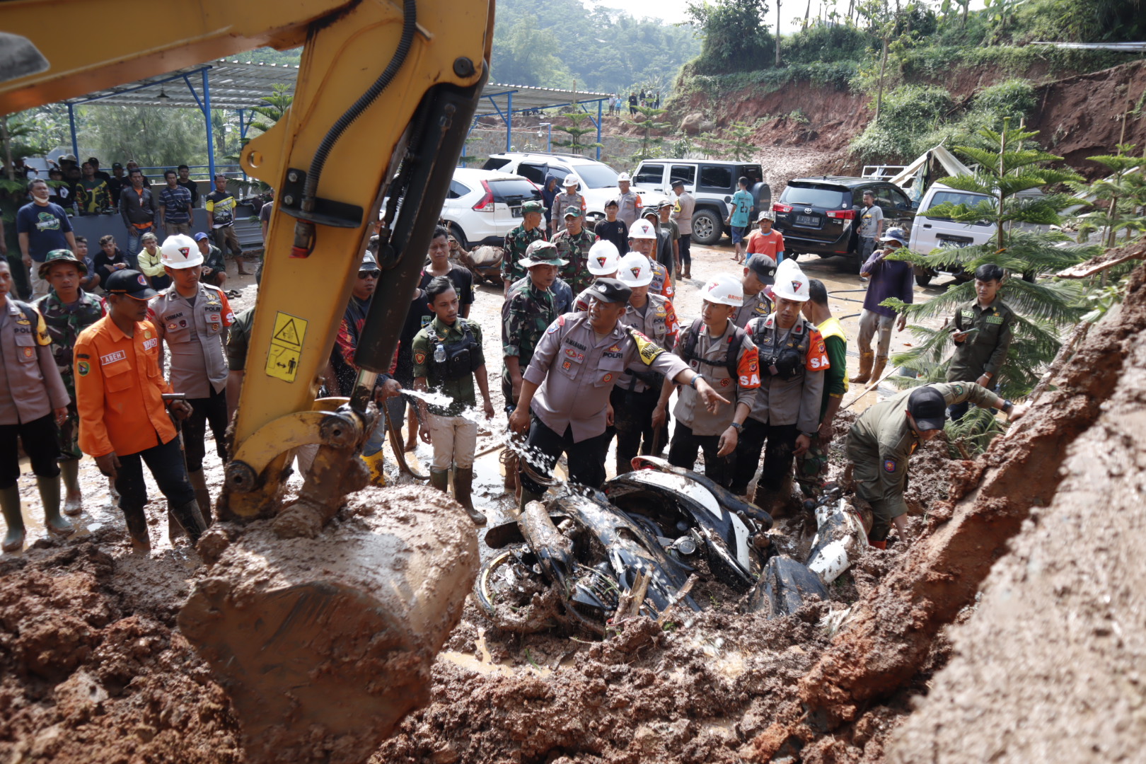 “Sedangkan 5 unit kendaraan mobil itu kelima-limanya tidak ada yang tertimbun dan alhamdulilah karena sudah di antisipasi selama hujan tidak ada yang melintas, sehingga pada saat longsor tidak ada yang menimpa warga masyarakat,” sambungnya.