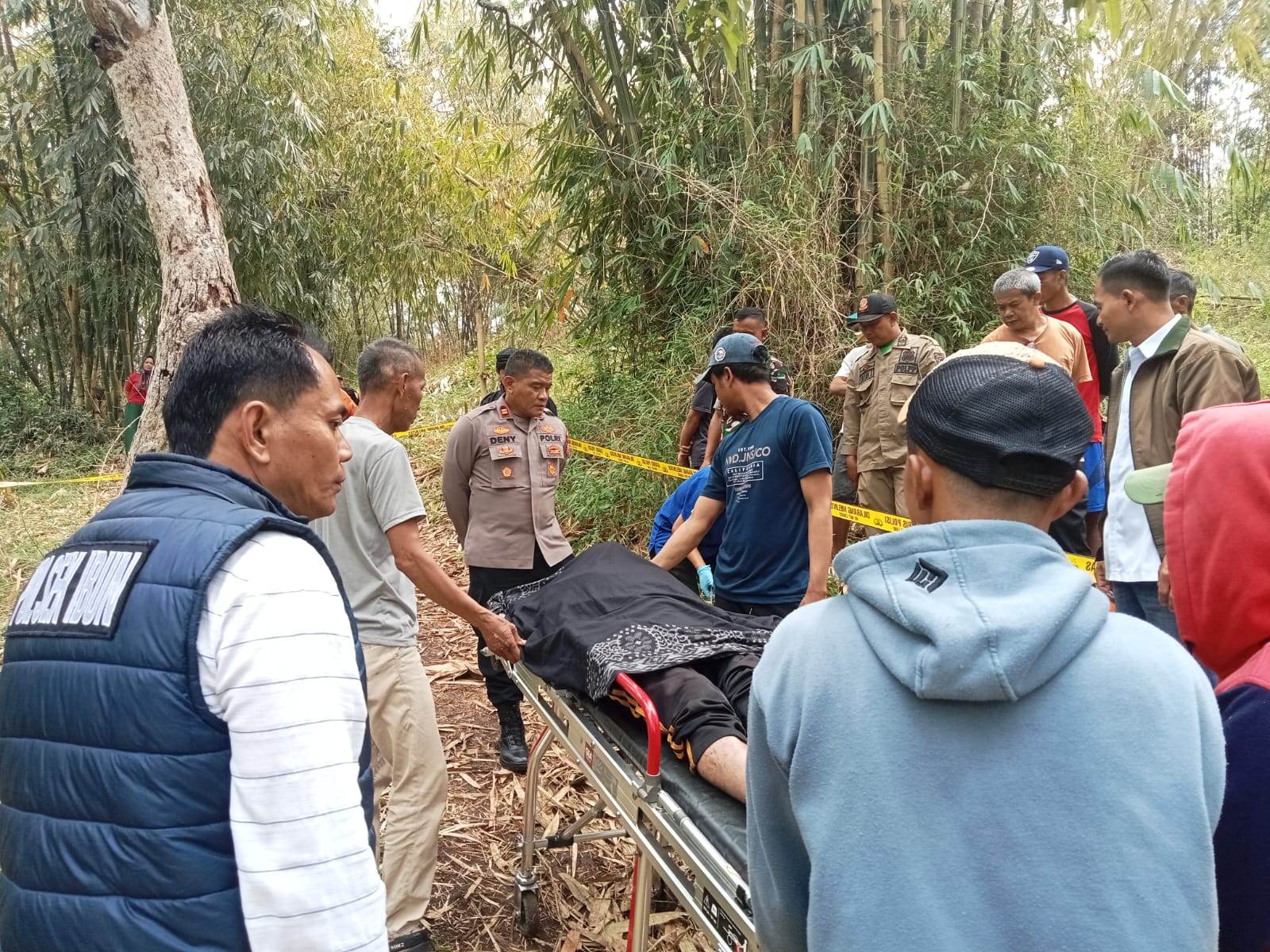 “Ketika melewati area perkebunan bambu, saksi menemukan mayat seorang laki-laki dengan kondisi leher terikat dengan seutas tambang yang menggantung di sebuah pohon di pinggir jalan setapak,” ujarnya.