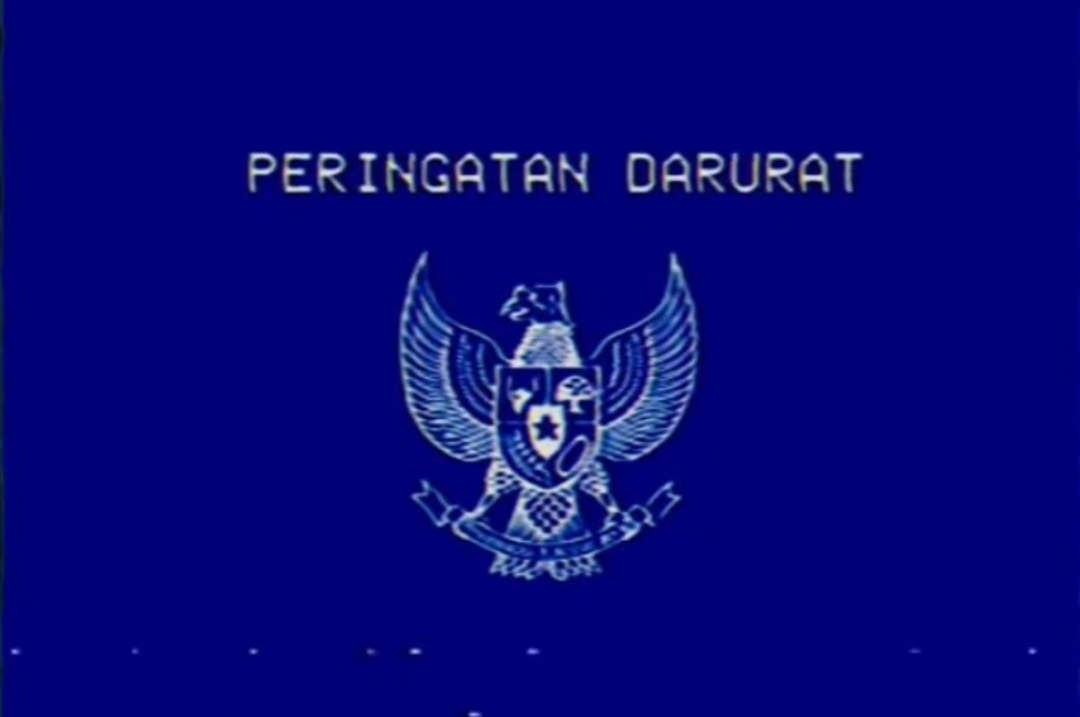 Dengan latar belakang warga biru, tepat di atas lambang negara tersebut tampak tertulis kalimat “Peringatan Darurat”.