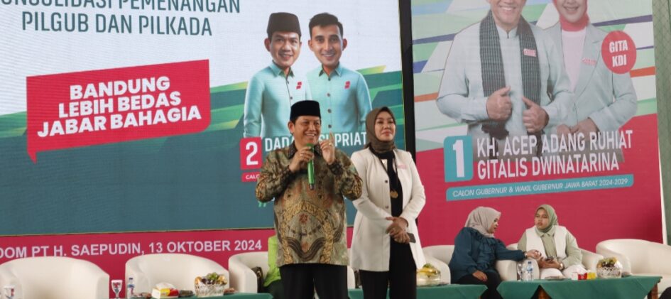 TOP JABAR – Sejumlah alumni Pondok Pesantren dari 27 Kabupaten/Kota se-Jawa Barat dan Muslimat mendeklarasikan dukungannya untuk pasangan calon Gubernur dan Wakil Gubernur Jawa Barat nomor urut 1, Acep Adang Ruhiyat-Gitalis Dwinatarina (Gita KDI). Deklarasi tersebut berlangsung saat DPW PKB Jawa Barat menggelar konsolidasi pemenangan Acep Adang Ruhiyta-Gitalis Dwinatarina di kawasan Solokanjeruk, Kabupaten Bandung. Minggu, […]